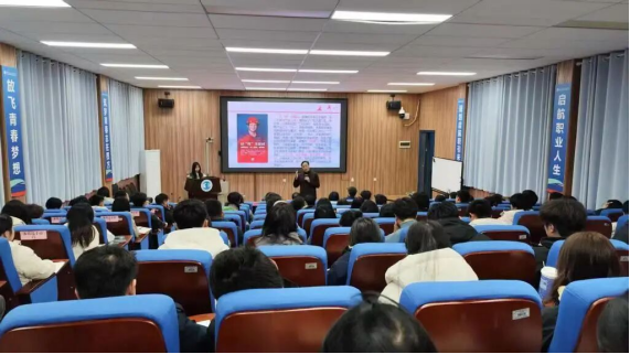 进行阐释。他带领师生穿越历史烟云,重温毛泽东同志等革命先辈的壮志豪情与艾爱国、万步炎等大国工匠的卓越风采,重点结合中国共产党人精神谱系的丰富内涵,解读延安精神、劳模精神与工匠精神的本质契合,让大家明白工匠精神正是共产党人精神谱系在职业领域的生动延伸与具体体现。文会长更以殷切期许为青年学子指明“认死理”“肯低头”“有温度”的成长路径,鼓励大家从精神谱系中汲取奋进力量。